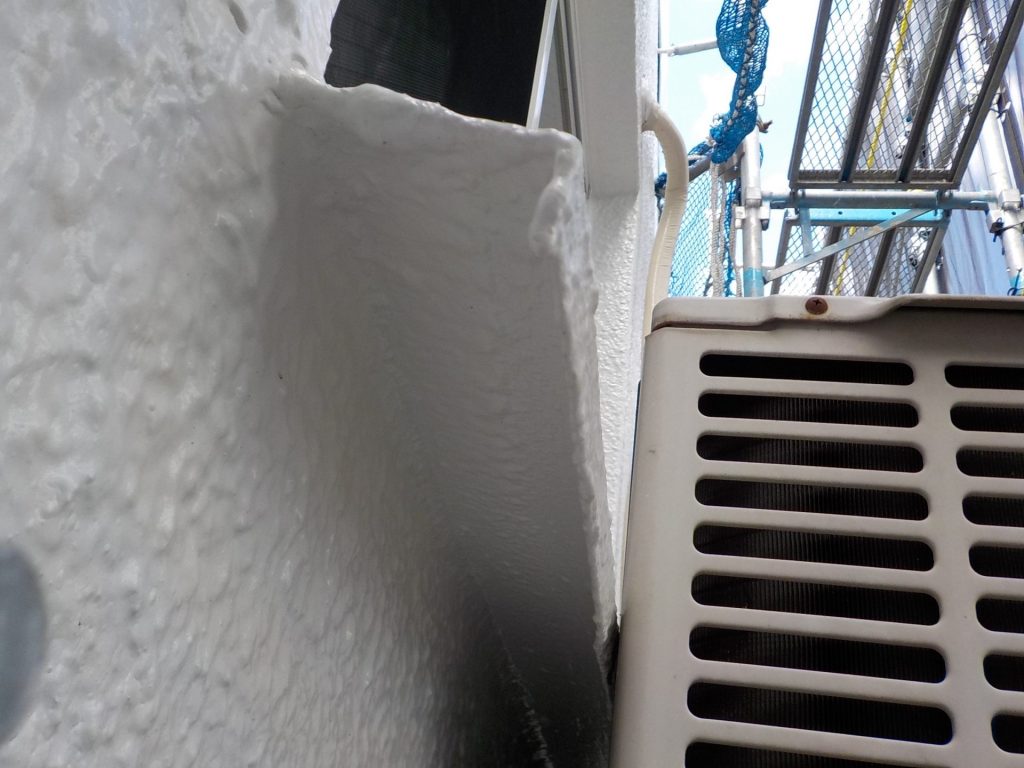 架台に換気グリルが当たってしまう問題が有りましたが、別の場所では窓枠と室外機が当たってしまっていました。